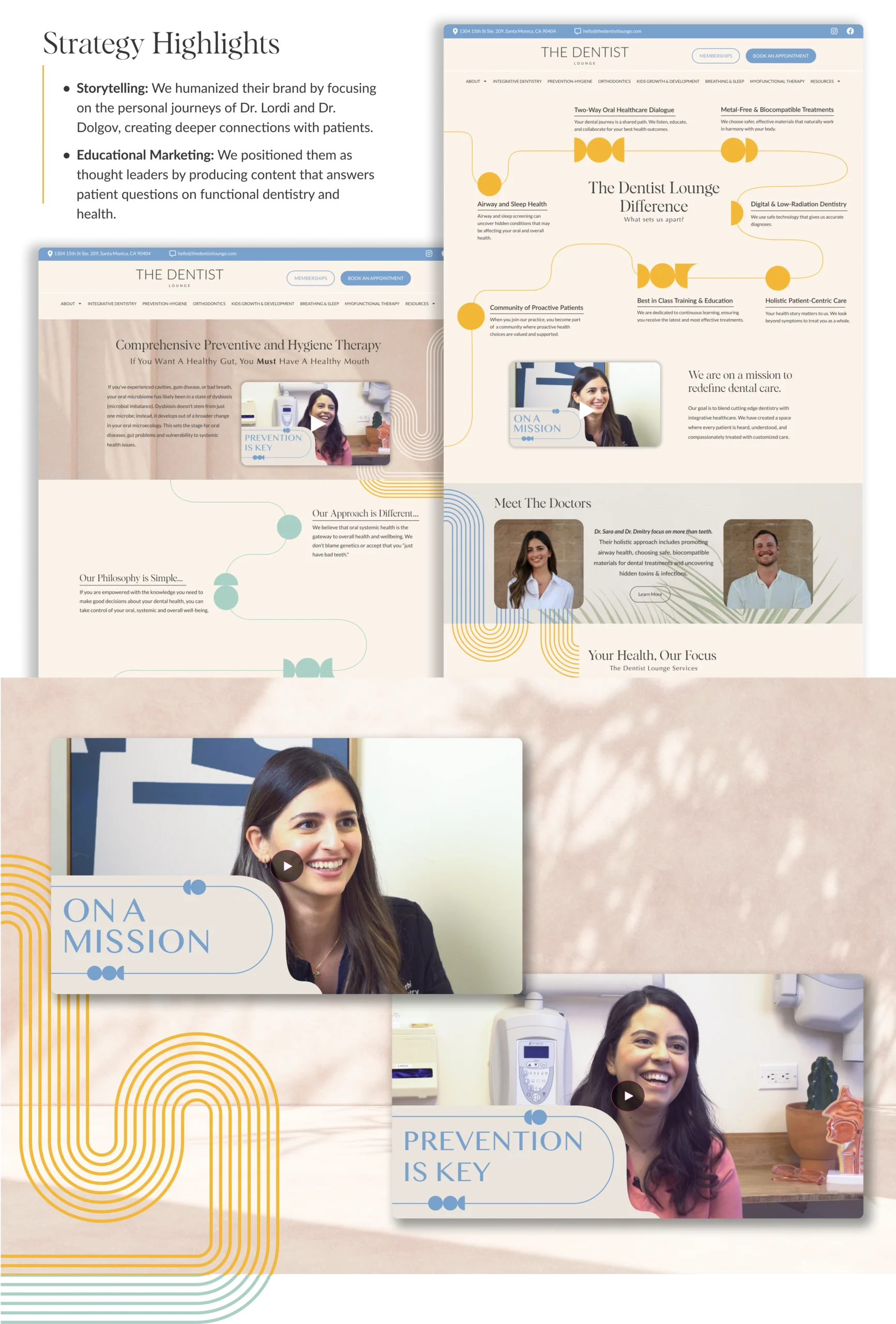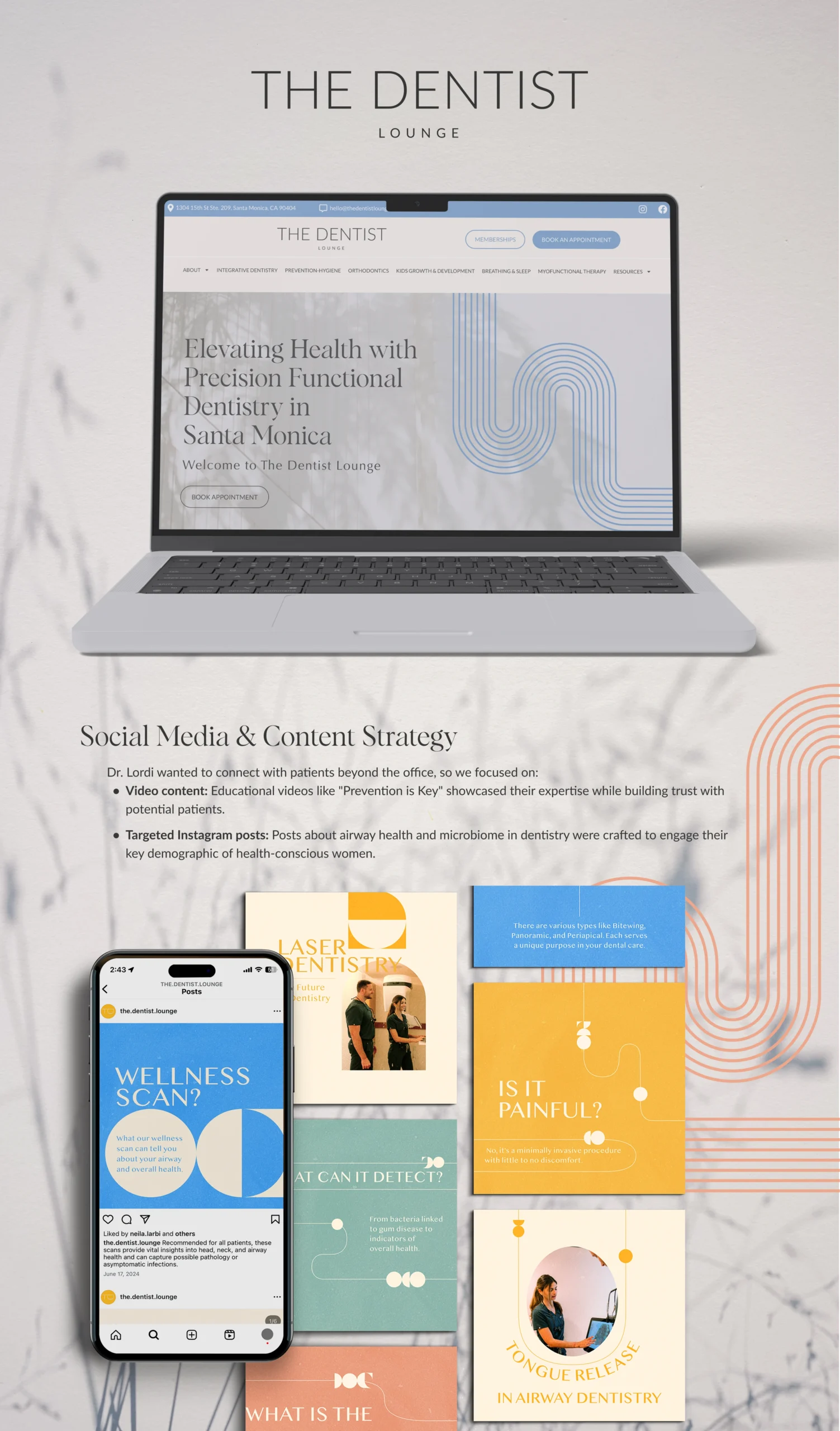 For their practice, The Dentist Lounge, we focused on positioning their brand to reflect their innovative approach. We created a modern, informative website and a social media strategy that effectively tells their story in a relatable, educational way. The goal was to merge precision functional dentistry with airway and holistic health, ensuring their brand attracted their ideal patients.